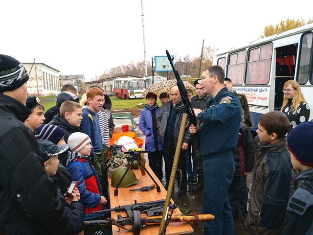 Ребята были ознакомлены с историей создания Гражданской обороны страны, с образцами советского и иностранного оружия и специальными средствами спасения. В ходе проведения занятий были показаны учебные фильмы, фильм посвященный 80 – ти летию ГО. По окончании занятия дети получили буклеты «Паспорт безопасности учащегося», листовки посвященные 80 – ти летию образования ГО страны.