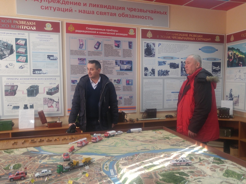 В ходе посещения, члены комиссии ознакомились с учебно-материальной базой, организацией учебного процесса и повседневной деятельности, экспозицией музея истории МПВО-ГО-РСЧС области.