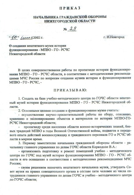 Нештатный музей истории МПВО-ГО-РСЧС Нижегородской области находится на первом этаже в кабинете №16.